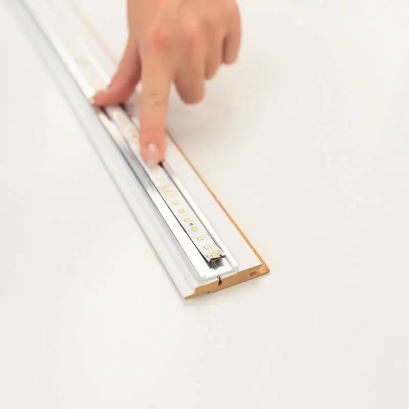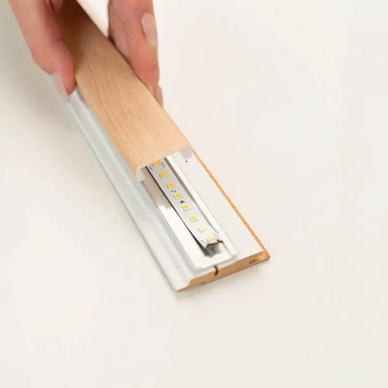 Découvrez Maestro Latt Led. Ce profil subtil s’intègre parfaitement au système à rainure et languette de Maestro Latt. Un profil en plastique transparent assorti au coloris se clipse dessus : il adoucit la lumière et la répartit de manière plus uniforme. Attention : la source lumineuse elle-même – la bande led – n’est pas incluse. Cela vous donne la liberté de choisir entre des bandes led traditionnelles ou des sources lumineuses intelligentes pouvant être commandées par Google, Siri ou Alexa.